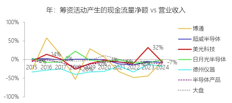 投资活动产生的现金流量净额:2026财年中期,美光科技的投资活动产生的现金流量净额为-101.19亿美元,绝对值同比增长60.62%,与营业收入的比例为-26.98%,同比上升10.6个百分点;2015-2024财年(十年),此项合计为-793.61亿美元,平均比例为-35.55%,比半导体产品行业的均值低12.26个百分点,长期呈下降趋势。比例短期上升主要由于人工智能(AI)驱动的内存和存储需求爆发式增长,导致2026财年中期营业收入同比激增123.74%,收入的扩张速度显著超过了投资活动净现金流出的增长速度,从而在分子分母效应下使该比例(绝对值)有所回升。同时,虽然公司为满足HBM和高性能数据中心市场需求持续加大资本支出,但2026财年上半年收到的政府激励款项(约22.6亿美元)以及处置固定资产带来的现金流入,在一定程度上对冲了部分资本性开支。比例长期下降主要由于存储器行业极高的技术壁垒和资本密集度,要求美光科技在2015-2024财年期间必须持续投入巨额资金进行先进制程迭代(如从1$\alpha$向1$\beta$、1$\gamma$ DRAM演进及NAND层数堆叠)和EUV等尖端设备购置。此外,期间发生的多次战略性资本运作,如2017财年以41亿美元完成对台湾力积电(Inotera)的股权收购,以及2020财年回购IMFT少数股权等,均产生了大规模的现金流出,而长期营收受行业周期性价格侵蚀影响,其增速(年复合5%)未能覆盖资本投入强度的持续攀升。比例低于半导体产品行业的均值主要由于美光科技所处的存储器细分领域相较于半导体行业中的逻辑芯片或模拟芯片更具“大宗商品”属性,维持技术领先和位元份额所需的晶圆厂基建及工艺设备投资(IDM模式)远高于轻资产或资本密度较低的行业同行。这种由产品特性决定的持续高强度资本支出结构,使得美光在面临激烈的全球竞争时,必须投入比半导体行业平均水平更高比例的营收用于资产更新与产能扩张,导致其投资活动现金流净额对营收的比例长期处于行业较低水平。