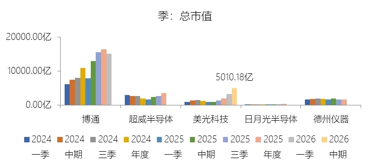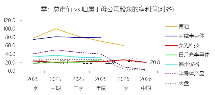 市盈率:2026财年Q2 TTM,美光科技的归属于母公司股东的净利润(对齐)为241.11亿美元,对比年初增长182.36%,总市值与归属于母公司股东的净利润(对齐)的比例为20.8倍(市盈率),对比年初下降1.21个倍数;2015-2024财年(十年),此项合计为403.40亿美元,平均比例为15.2倍,比半导体产品行业的均值低14.78个倍数,长期呈上升趋势。