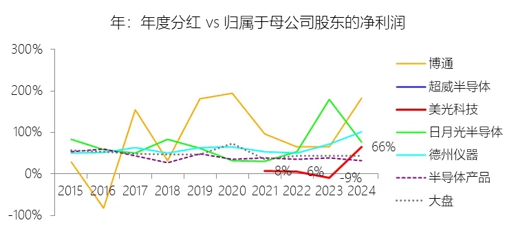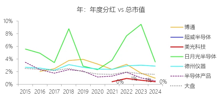 股息率:2024财年,美光科技的股息率为0.45%,同比下降0.23个百分点;2015-2024财年(十年),平均股息率为0.32%,比半导体产品行业的均值低0.95个百分点,长期呈下降趋势。