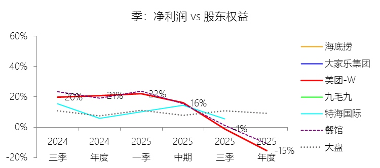 净资产收益率:2025年末,美团-W的股东权益为1509.88亿元,对比年初减少12.52%,净利润与股东权益的比例为-15.47%(TTM净资产收益率),同比下降36.21个百分点;2015-2024年(十年),净利润与股东权益的平均比例为-16.13%,比餐馆行业的均值低4.89个百分点,长期呈下降趋势。