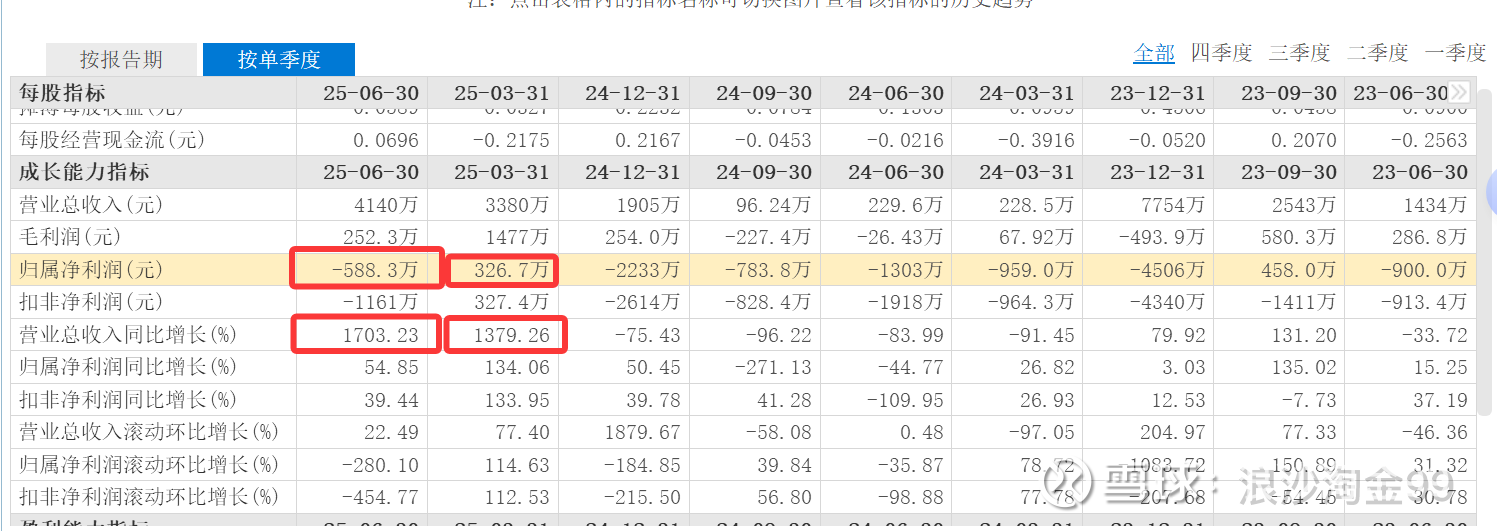 从财务数据显示:2025年第一和第二季度营业总收入都是10多倍的增幅!归属净利润收入明细亏损变窄,难道这不是“困境反转”是什么?!