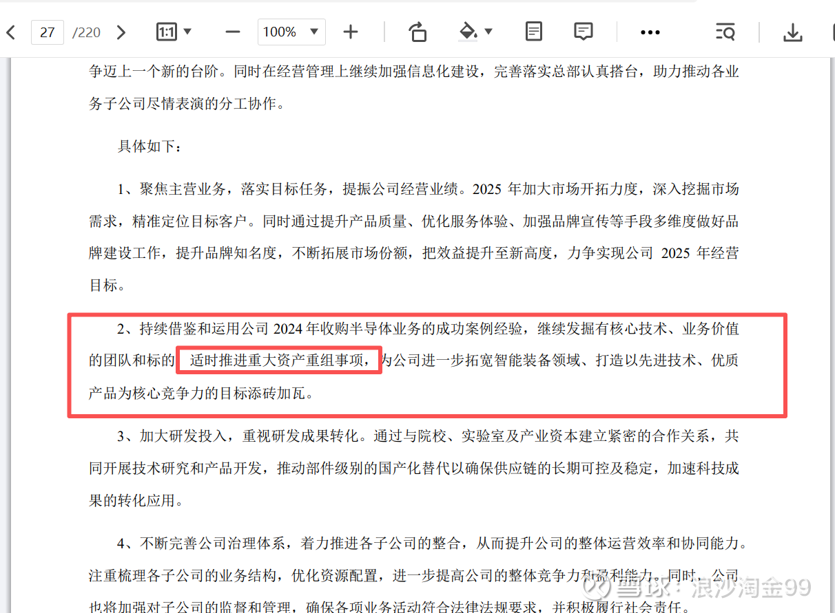 年报显示:适时推进重大资产重组事项!除了上述公司本身主营业务在逐步转型财务报表在不断提升之外,如果真的有重大资产重组无疑是叠加重量级利好,如果真的能重组无疑是属于很重要的潜在利好。