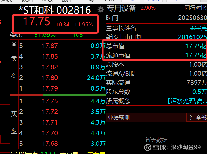 *St和科目前股价17.75元,总市值才17.75亿,总流通股本才刚好1亿,属于典型的袖珍小盘股。