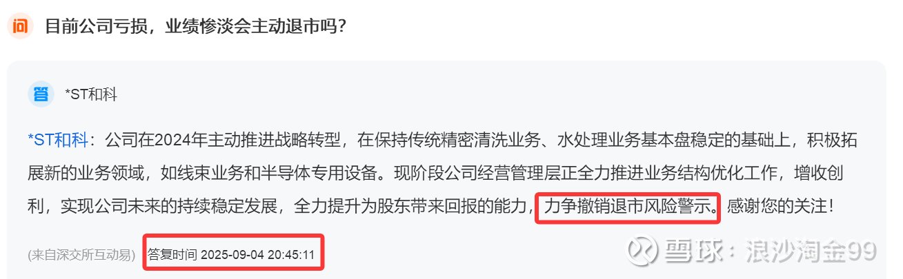 有的人依然会问:有退市风险吗?前几天2025年9月4日晚上8:45分董秘加班回复投资者清晰的标示:“…..力争撤销退市风险警示”。从晚上加班时间点来看,可见公司比较重视二级市场的股价表现,二则非常清晰的传达不会有退市的风险(这完全属于每个人的理解能力了!)