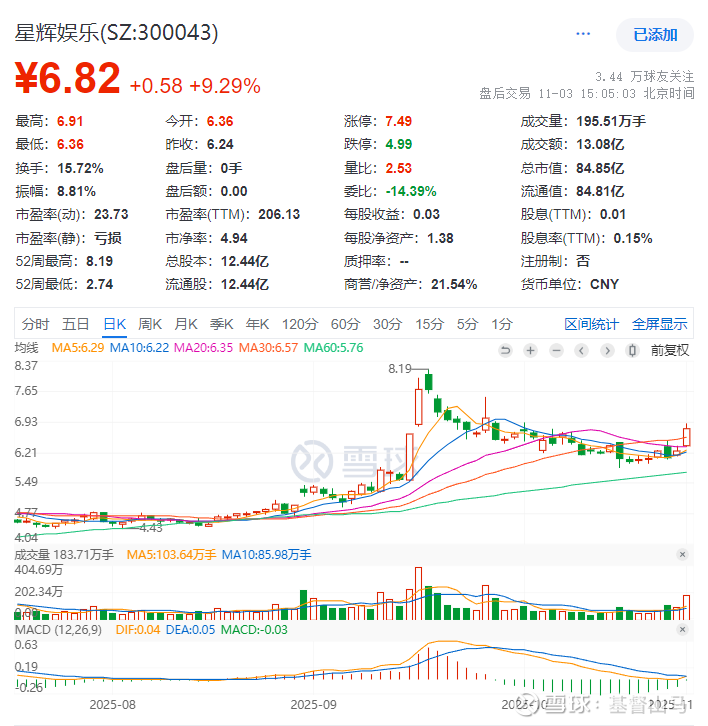 目前星辉娱乐的股价表现非常强势: