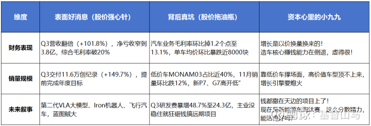 先上张表,把小鹏的增长悖论扒得明明白白,看完我们也会理解为啥股价涨不动: