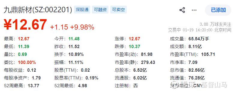 不过话说回来,九鼎新材今天涨停,纯粹是情绪先行。