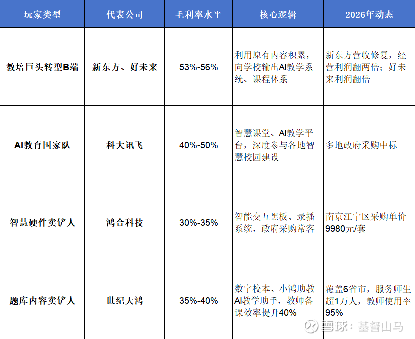 鸿合科技、世纪天鸿这些原本做硬件、做教辅的,反而成了最纯正的卖铲人。