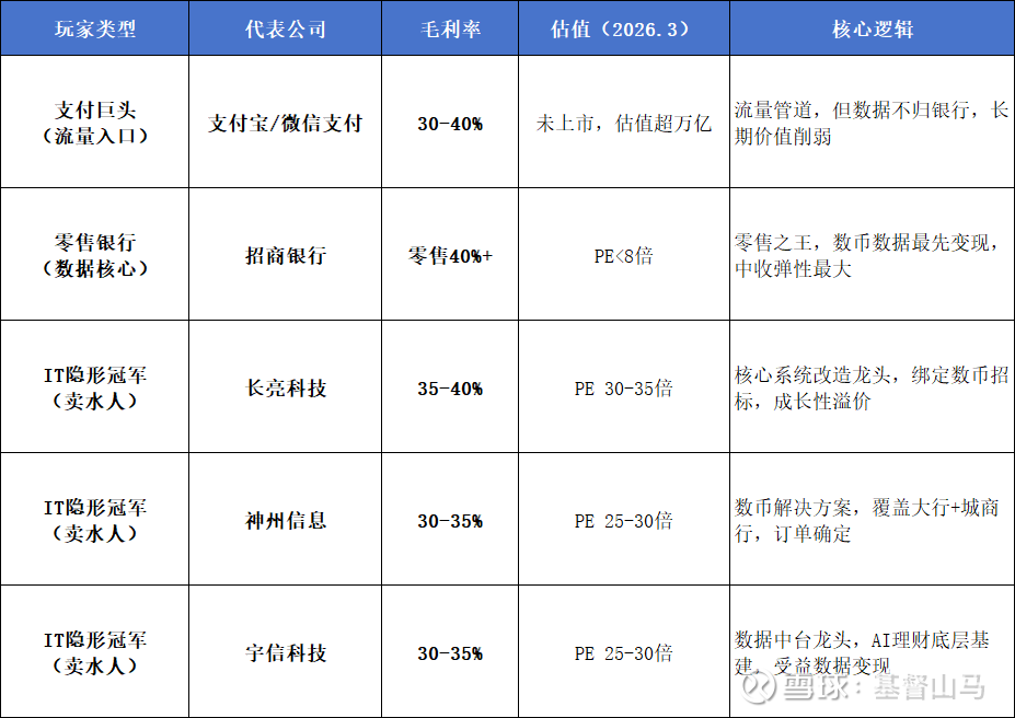 在数字人民币重塑支付格局的背景下,产业链各环节的受益程度各不相同。