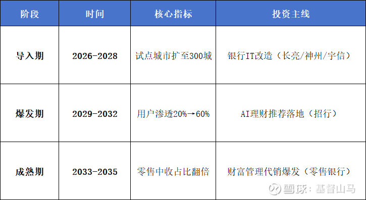 从试点扩容到中收兑现,这个赛道将经历三个清晰的成长阶段,每个阶段的投资主线各不相同: