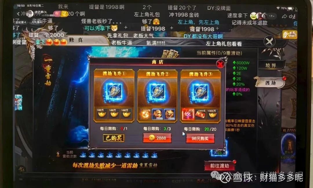 传奇不老,B站老芒果直播梦幻西游挺多人看,到直播传奇的时候,直接人数破万,还有很多网友刷舰长和提督助力。