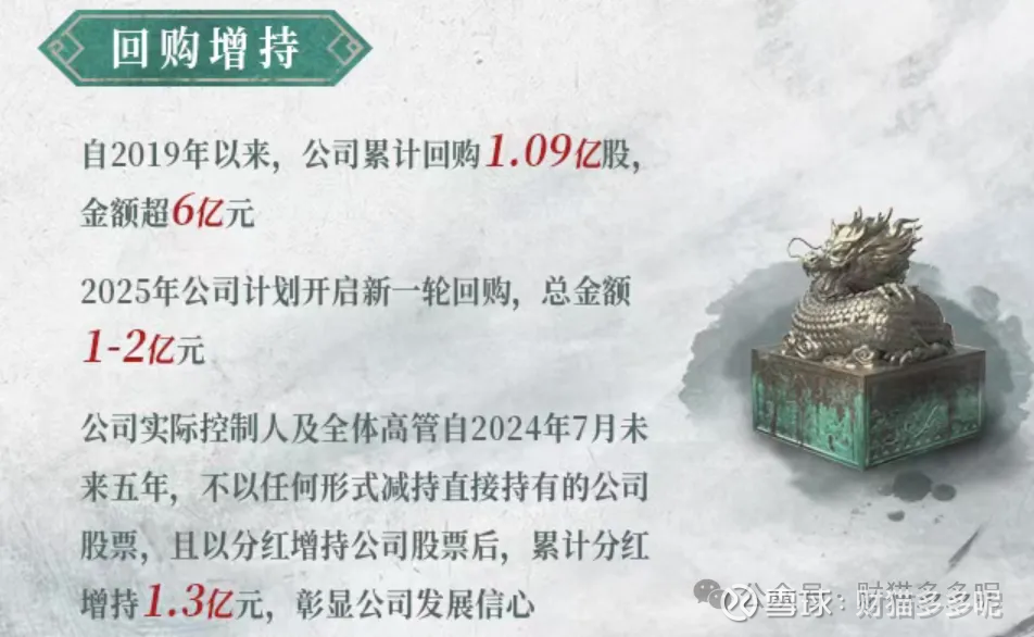为什么说这家公司有格局呢,很多公司股价一涨高管和股东就开始减持,吉比特前两天就是,但恺英网络的老板和高管承诺了5年内不减持,更让人泪目的是收到分红全部增持股票,实际也做到了,已增持8000多万。