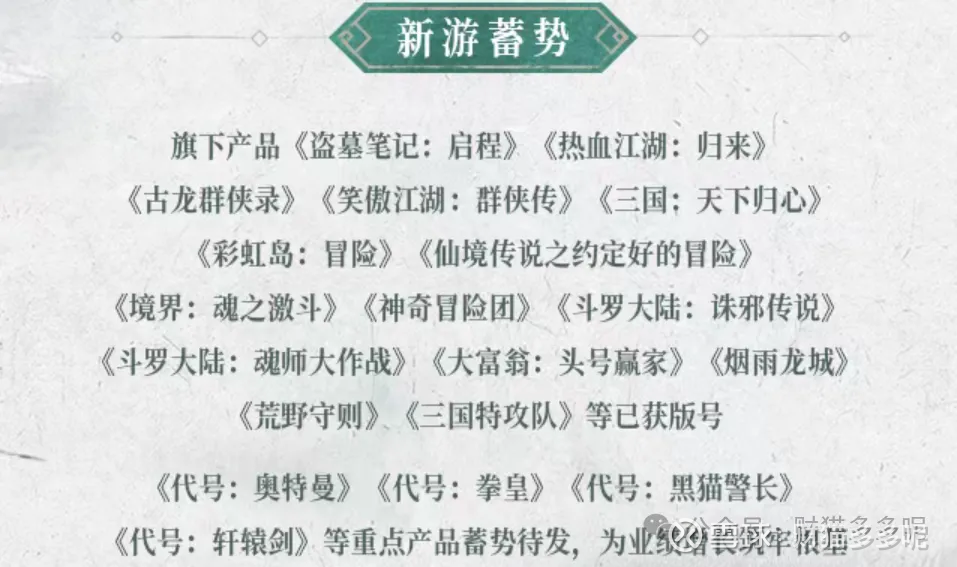 预计未来半年到1年上线的游戏有15款以上,斗罗大陆和盗墓笔记都是超级IP,这种IP游戏本来粉丝就很多,投放和销售费用就会低很多,所以恺英的净利率30多个点这么高。