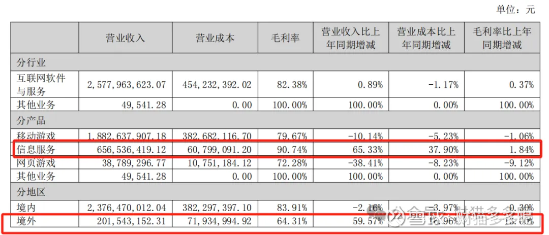 我们看一下公司24年财报披露的信息,996传奇盒子属于信息服务,这块一年收入收入9个亿,增速40%+,毛利率89%,近期有几个公司付了4.5亿的推广费用。