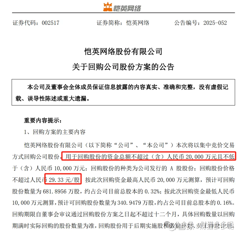 回购1-2个亿,最高价29.33,比现在的价格还有26%的涨幅,恺英也是王者霸气不断回顾和分红,回报股东。