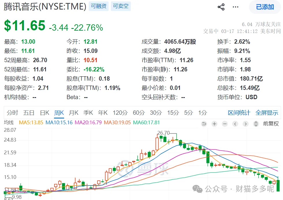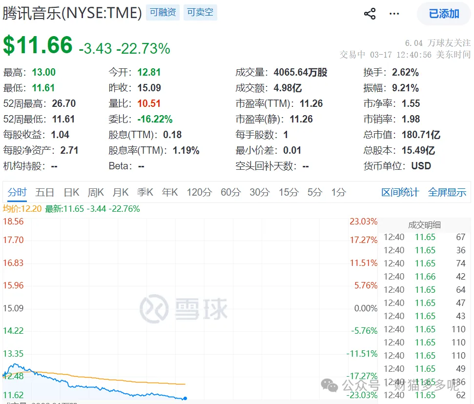 ▋腾讯音乐暴跌