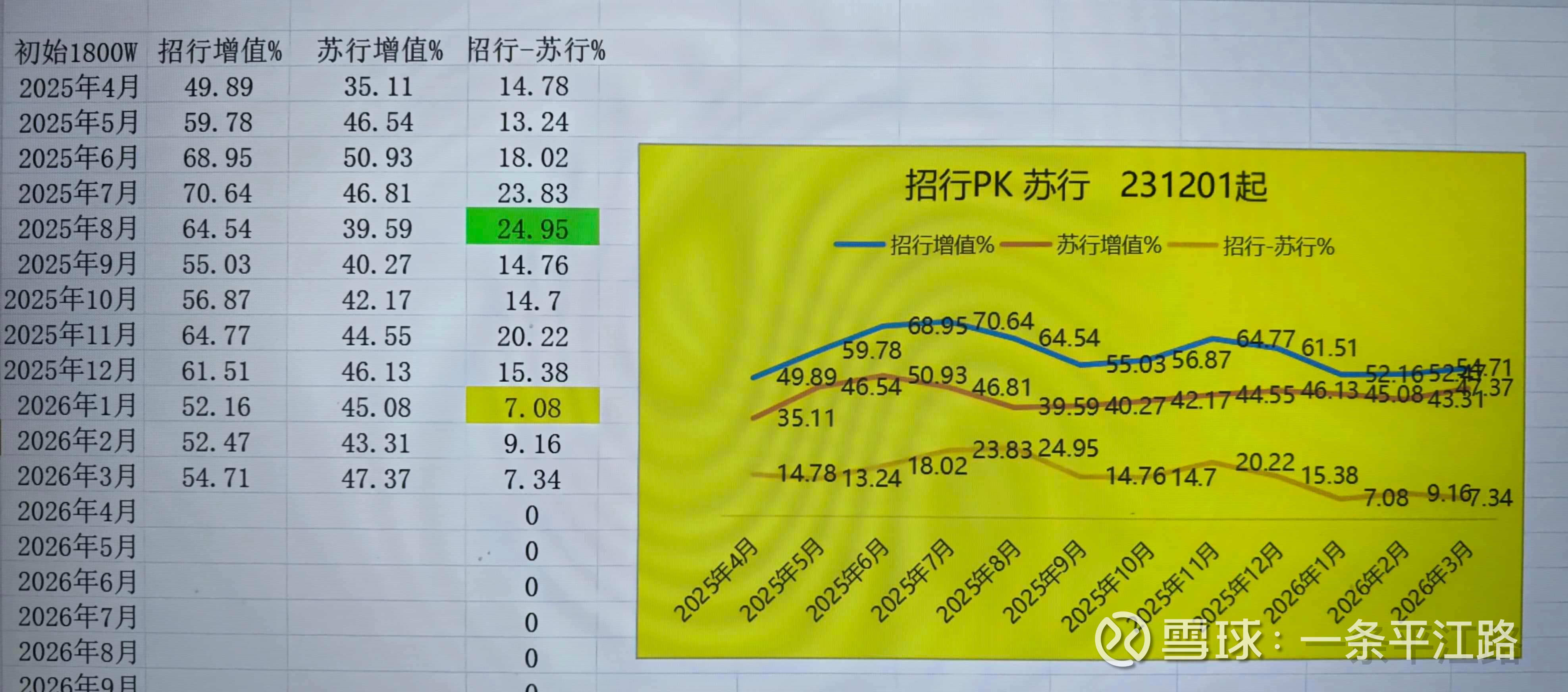2026年3月止,苏州银行与招商银行PK结果记录: