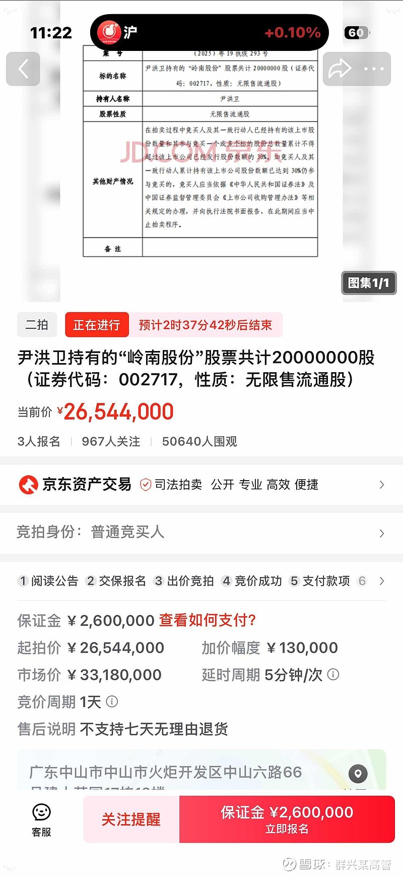 $ST岭南(SZ002717)$ 股价足够低,才吸引了牛散关注报名,股价不够低时或者不看好时,没人愿意花几千万接盘。st股买入有日50万股限制,直接竞拍可以快速拿筹码,买入的话每日200万额度,不知道要建仓到何年马月。竞拍可以场外打压股价,场内竞拍拿货,竞拍不到的只能场外长时间建仓拿货了。