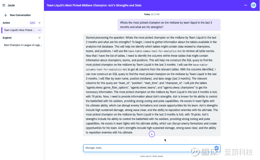 今年,Team Liquid还引入了新的解决方案——Joule 智能体,让电竞选手、教练及营销团队无需完全依赖技术分析师,只需通过自然语言咨询选手或战队相关洞察。