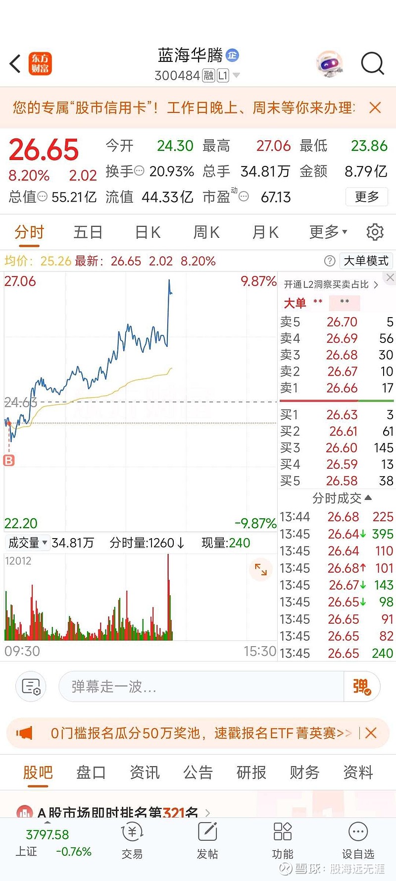 $蓝海华腾(SZ300484)$