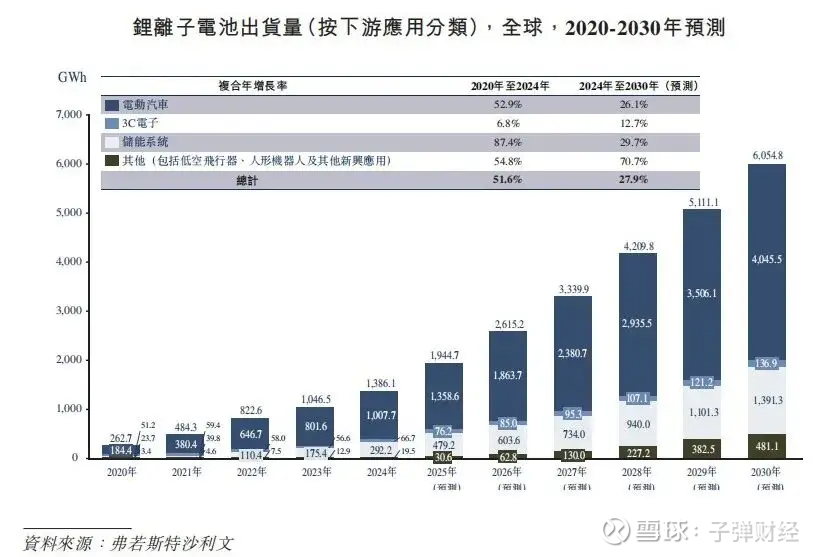 弗若斯特沙利文披露的数据显示,2020年锂电池出货量为262.7GWh,2024年上升至1386.1GWh,年复合增长率高达51.6%。