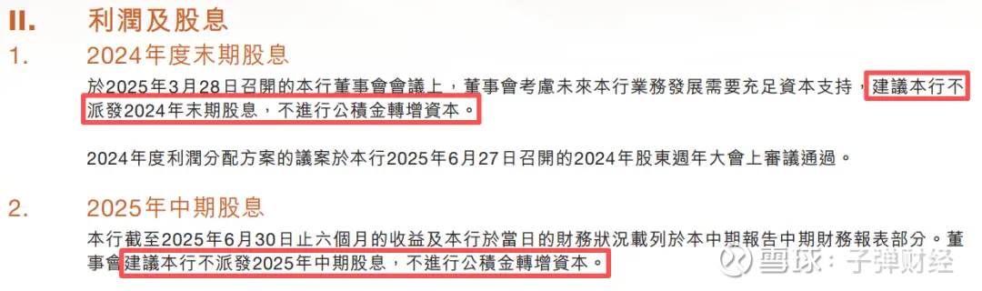 其中,该行明确了不派发2024年度股息的原因是“为夯实本行发展基础,综合考虑未来长远发展需要等因素”。