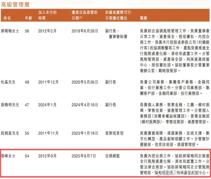 值得注意的是,甘肃银行现任的合规总监张峰在2025年8月中旬获得监管任职资格批复,而该行原合规总监郭力的任职期限截至2025年1月。