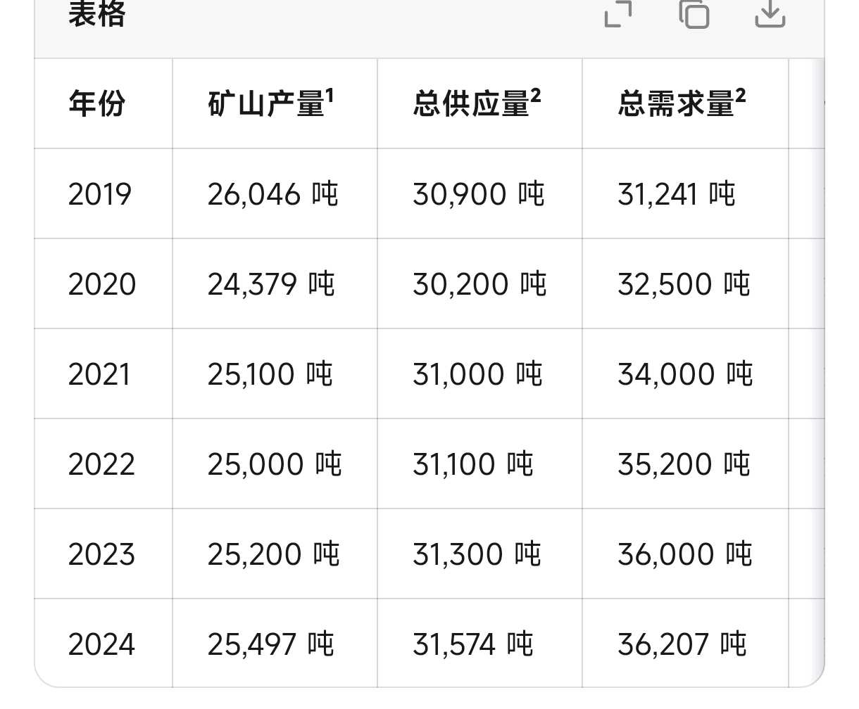2.过去五年白银矿产基本维持在25000吨左右,基本就是停止增长了。