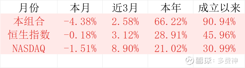 本月清仓第一重仓股小赢科技,将乐信的仓位从10%加到18%,重新建仓汤臣集团。整体股票数量12支不变,11支港股,1支中概美股。