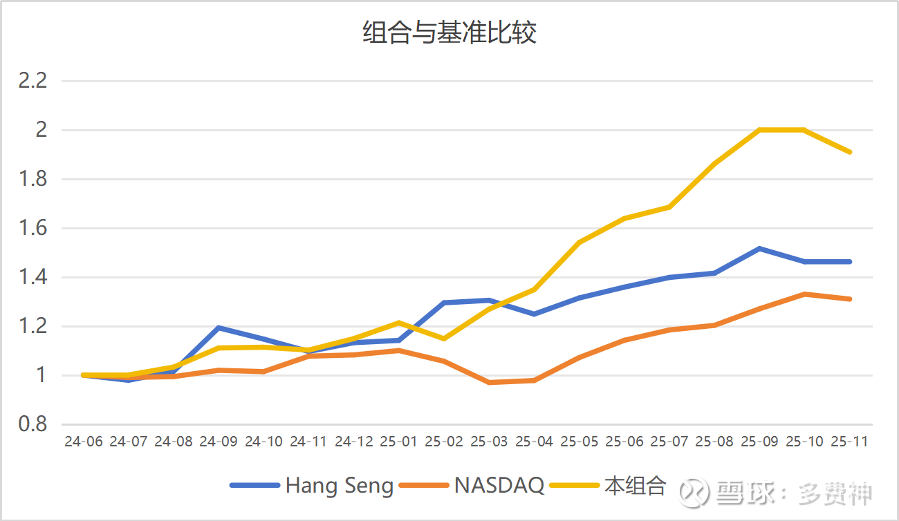 2024年7月26日开始入市交易后,到25年11月底实盘业绩为+90.94%,同期恒生指数表现为+45.96%,同期纳斯达克指数表现为+30.99%。