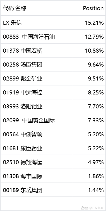 本月清仓中国有色矿业,加仓汤臣集团和德翔海运,建仓海丰国际和东岳集团。持有12支港股,1支中概美股。