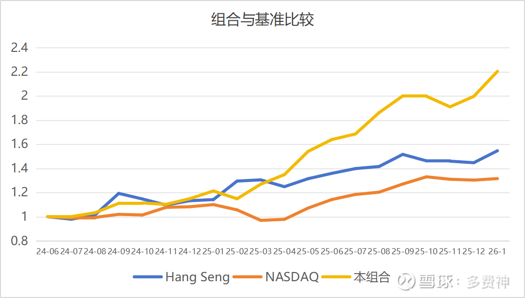 2024年7月26日开始入市交易后,到26年1月底实盘业绩为+120.28%,同期恒生指数表现为+54.59%,同期纳斯达克指数表现为+31.53%。