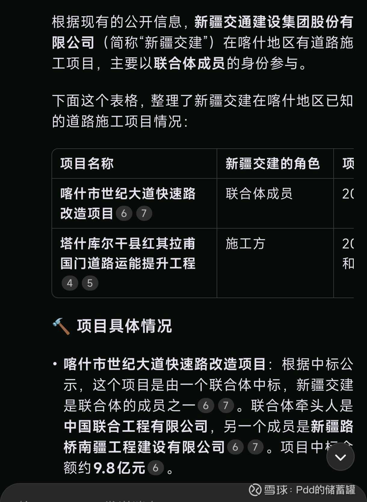 $新疆交建(SZ002941)$ 新疆地区资质最齐全,基础设行业龙头企业。参与疆内大部分高速公路,乡村公路等建设。也参与部分喀什地区道路建设