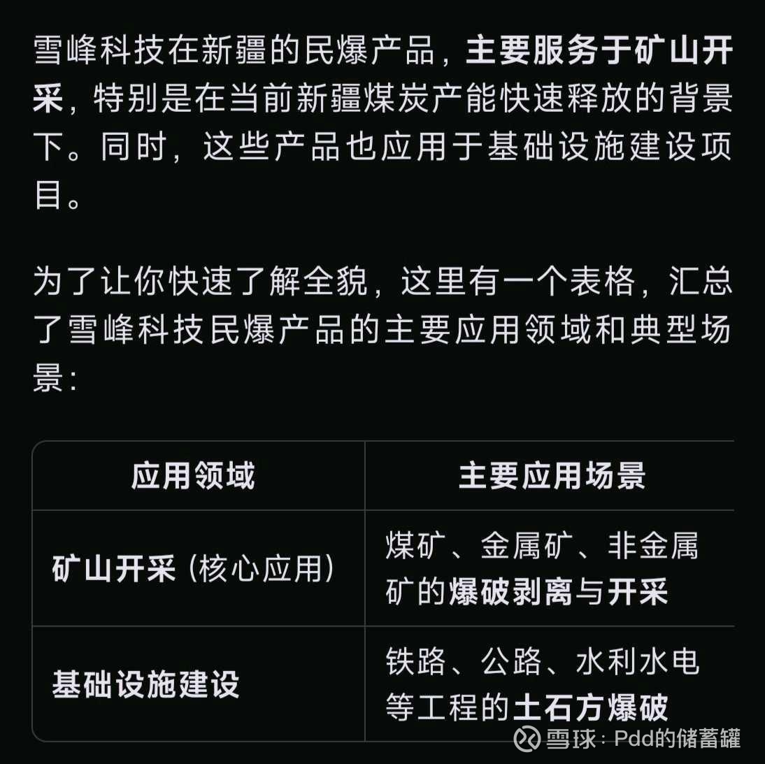 $雪峰科技(SH603227)$ 新疆地区民爆企业。资源的探取,大批量设施的建设,或许民爆会放量
