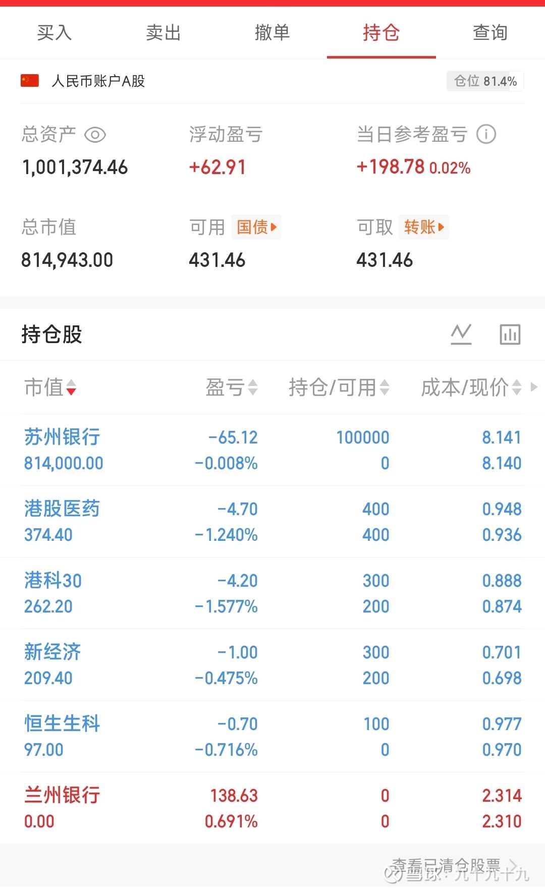 今天核心账户早盘清仓了兰州银行,观察了几天后,今天出手了,由小心翼翼改成了全军出击模式,在下午相对低点梭哈了10万股苏州银行。