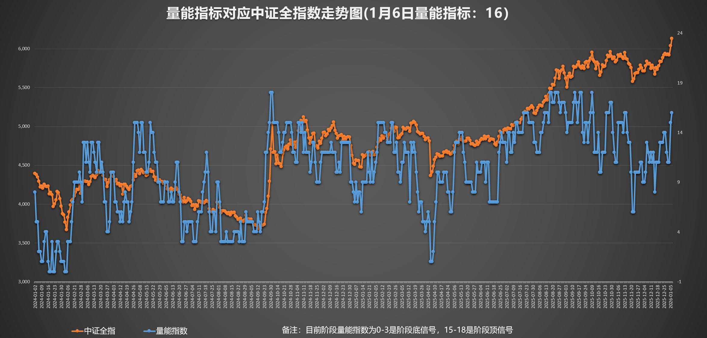 三、量能指标:从15提高到16,今天如果指数继续反弹,预计会第一次触发18的顶部。
