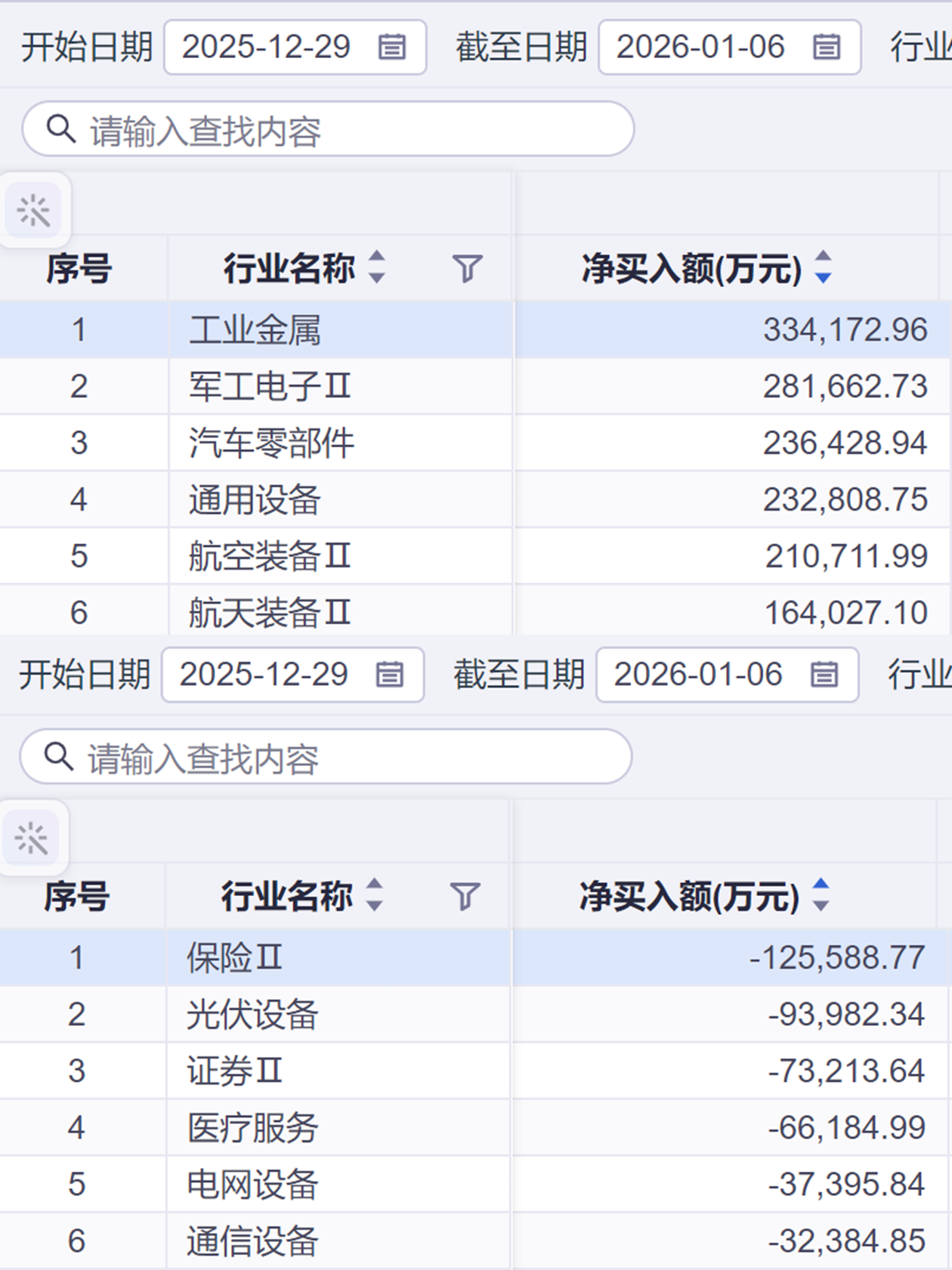 净卖出前五的行业:能源金属(-1.8亿)、航运港口(-1.7亿)、化学制品(-1.6亿)、煤炭开采(-1.6亿)、计算机设备(-1.2亿)。
