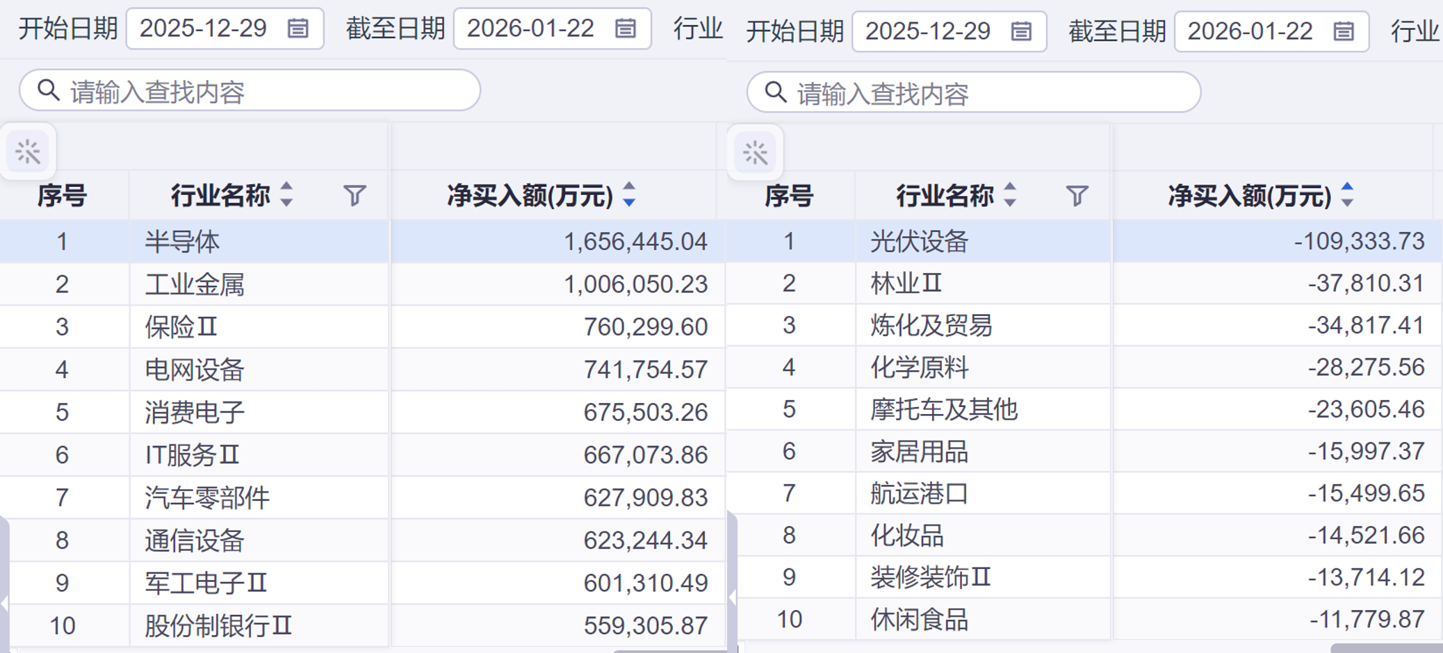 净卖出前五的行业:数字媒体(-4.1亿)、软件开发(-2.6亿)、证券(-1.7亿)、生物制品(-1.6亿)、汽车零部件(-1.4亿)。