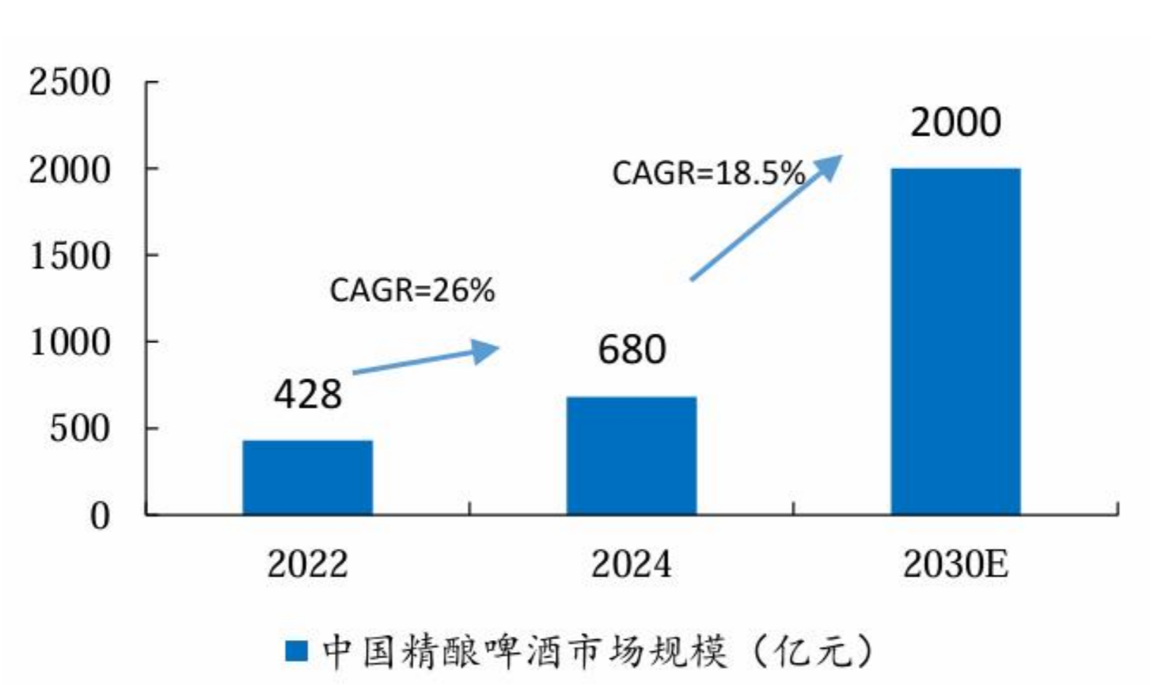 根据中研普华研究院《2025-2030年中国精酿啤酒行业竞争分析及发展前景预测报告》显示,中国精酿啤酒市场规模已从2022年的428亿元增长至2024年的680亿元,预计到2030年将突破2,000亿元,年复合增长率(CAGR)达18.5%。