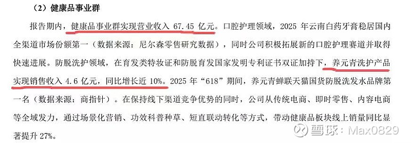 • 健康品:67.45亿,牙膏市占率第一,养元青4.6亿(+10%)