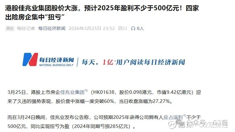 3月24日,佳兆业集团(01638.HK)一纸盈利预告刷屏,宣称2025年度预计录得归母溢利不少于500亿元,较2024年的285亿元亏损实现惊天逆转。