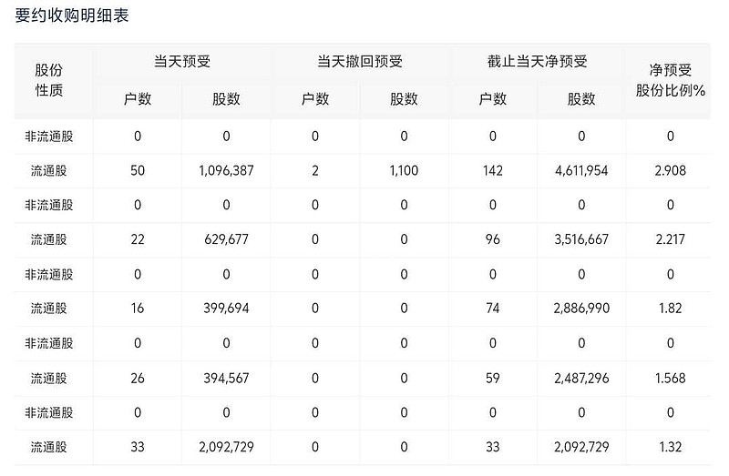 截止26日,累计申报要约461万股。要约成功最低股数3905万股。