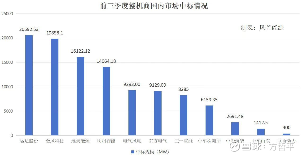 一是节日期间,公布了前三季度风电招标的统计数据。运达股份猛到什么程度呢,国内中标20.6GW,干到国内第一,金风第二,两家断崖式领先其他风机厂。