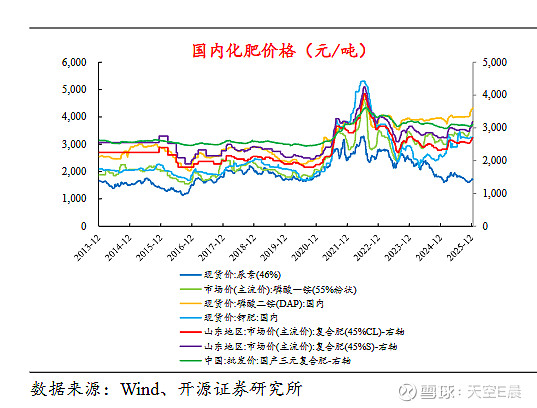 看一下复合肥的价格情况开源证券整理的数据看2022年高点国有近三年一直在下降趋势。