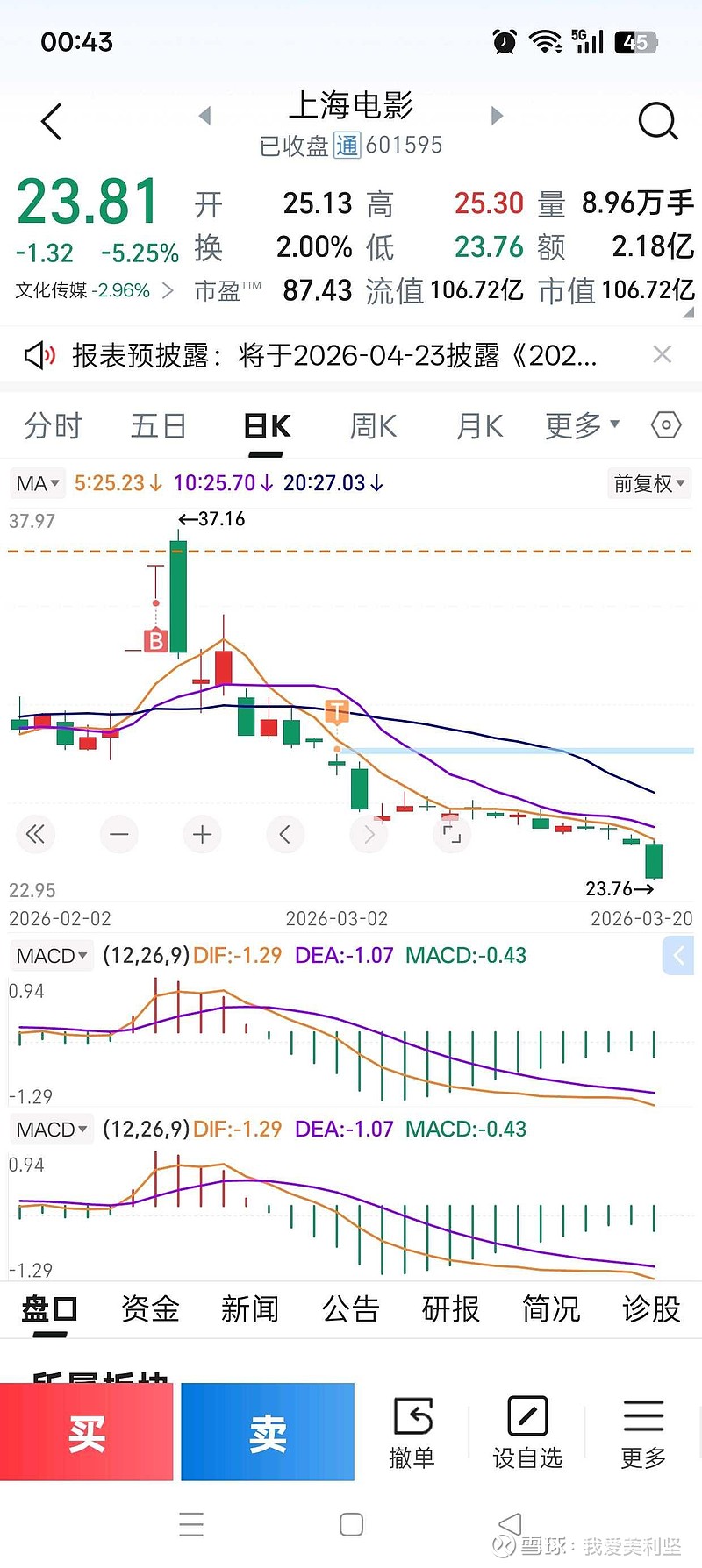$上海电影(SH601595)$
