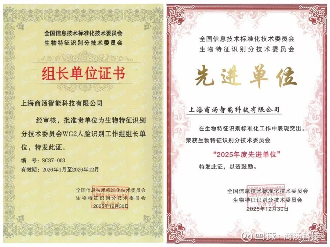 会上,商汤科技斩获双重重磅认可:不仅获颁2025年度“先进单位”,并连续四届蝉联生物特征识别分技术委员会人脸识别国家标准工作组组长。