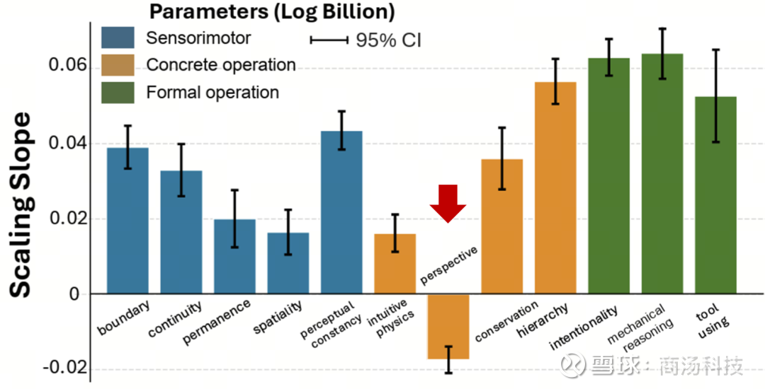 这篇论文也发现,空间智能似乎存在反尺度效应的现象:更大的模型并不能更好地解决空间智能任务。另外,在EASI的官方报告中也可以找到相似的描述,指出视角转换任务(Perspective-taking)依然是最具挑战的基础能力之一。