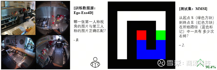 只在Ego-Exo4D上训练第一/第三人称视角匹配的模型可以大幅提升(+90.4%)在MMSI的2D迷宫导航问题上的表现