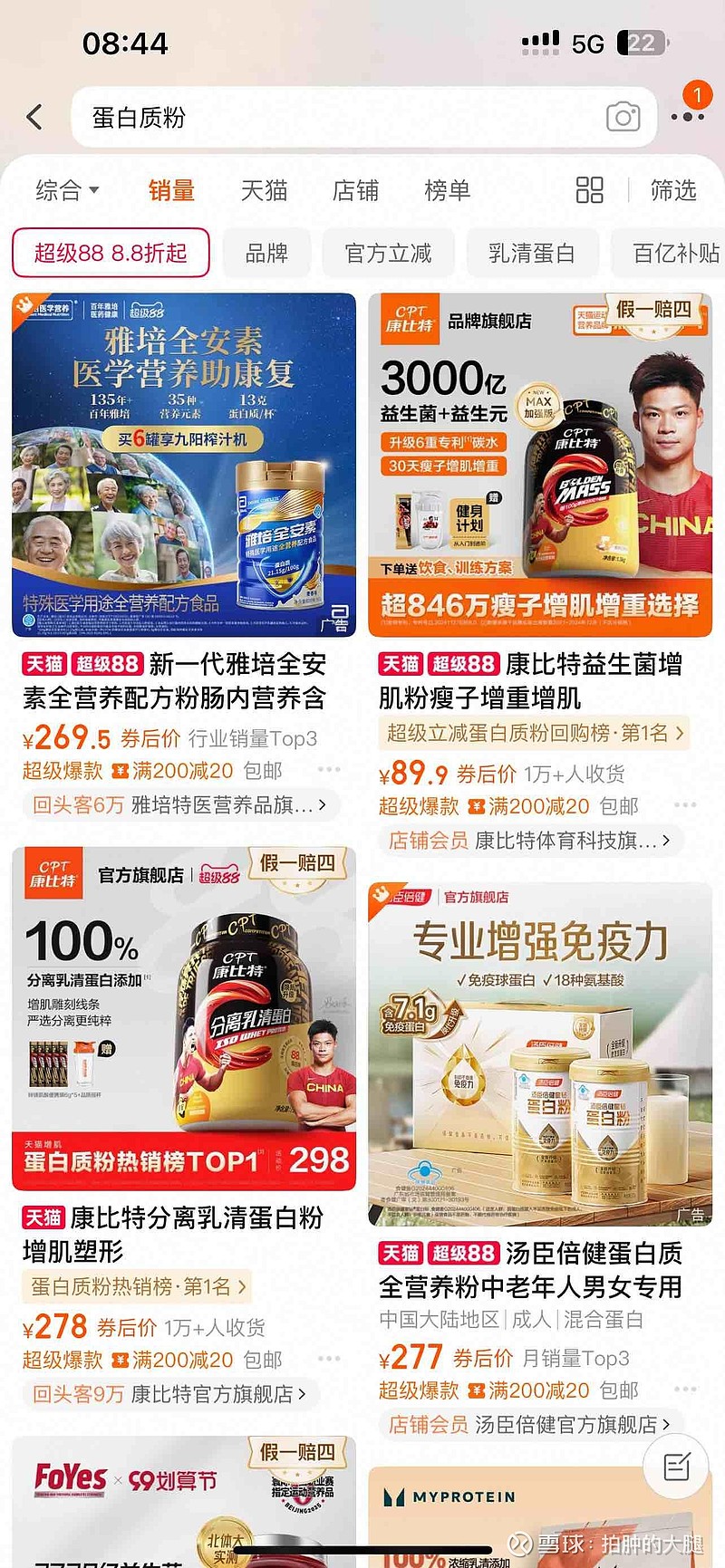 运动蛋白质粉这一细分领域的销量已经远远超过增强免疫力蛋白粉了,记得前一两年小汤还是蛋白粉领域的老大,销量遥遥领先,现在蛋白粉市场的王者地位也已经不复存在了!