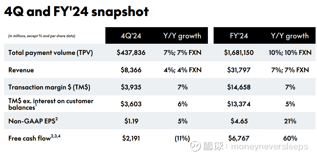四季报表面上看是双beat,但是是公司的指引比较低,因为之前股价有一波涨幅,投资人对于利润率更高的branded checkout增速有更高的预期7%,而这个季度实际增速6%,低于预期。并且公司对2025年增速指引不算特别强劲,引发股价当天大跌11%。